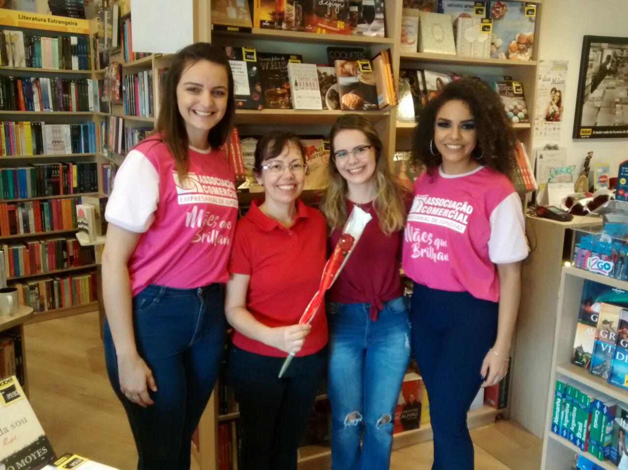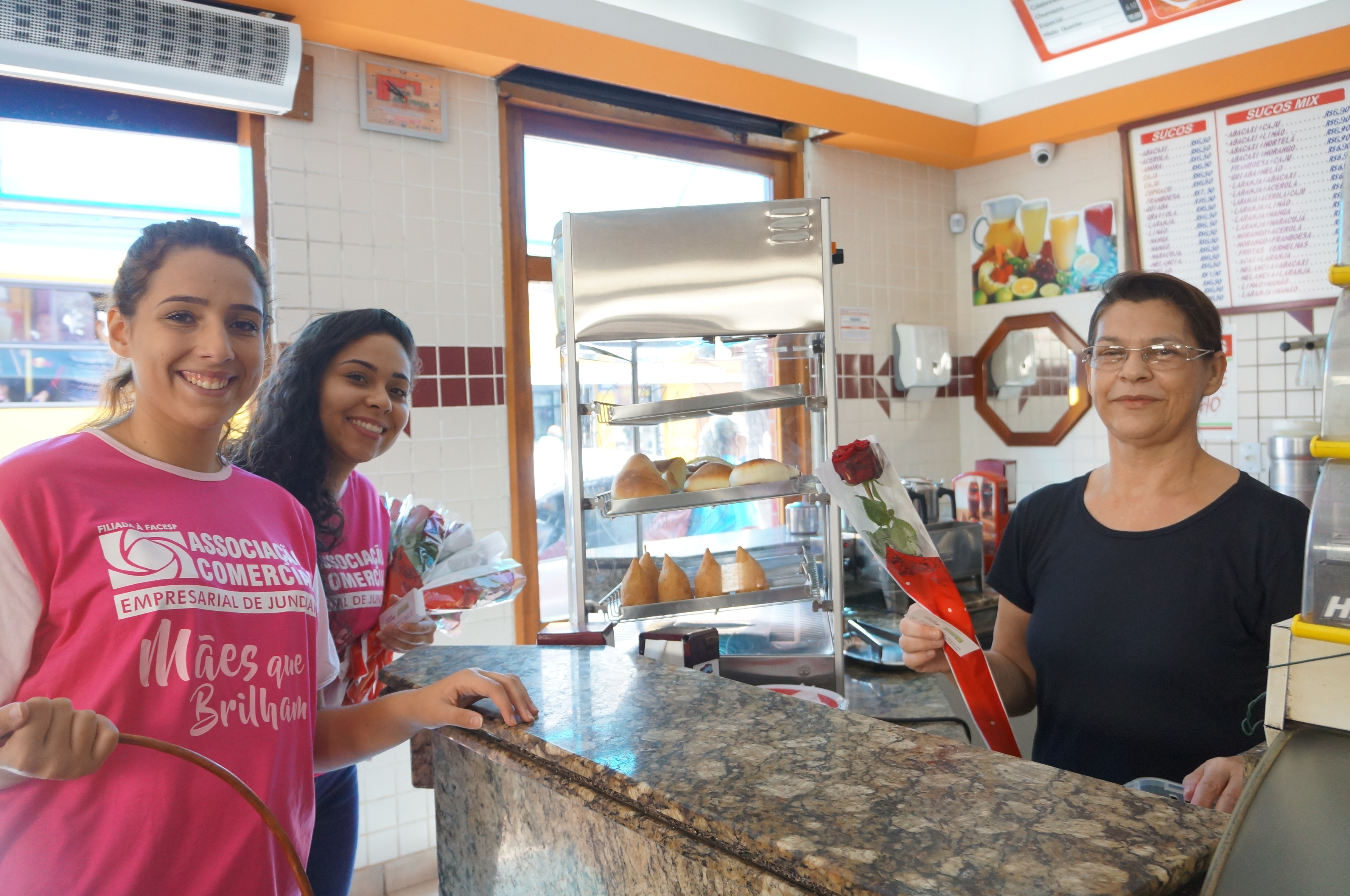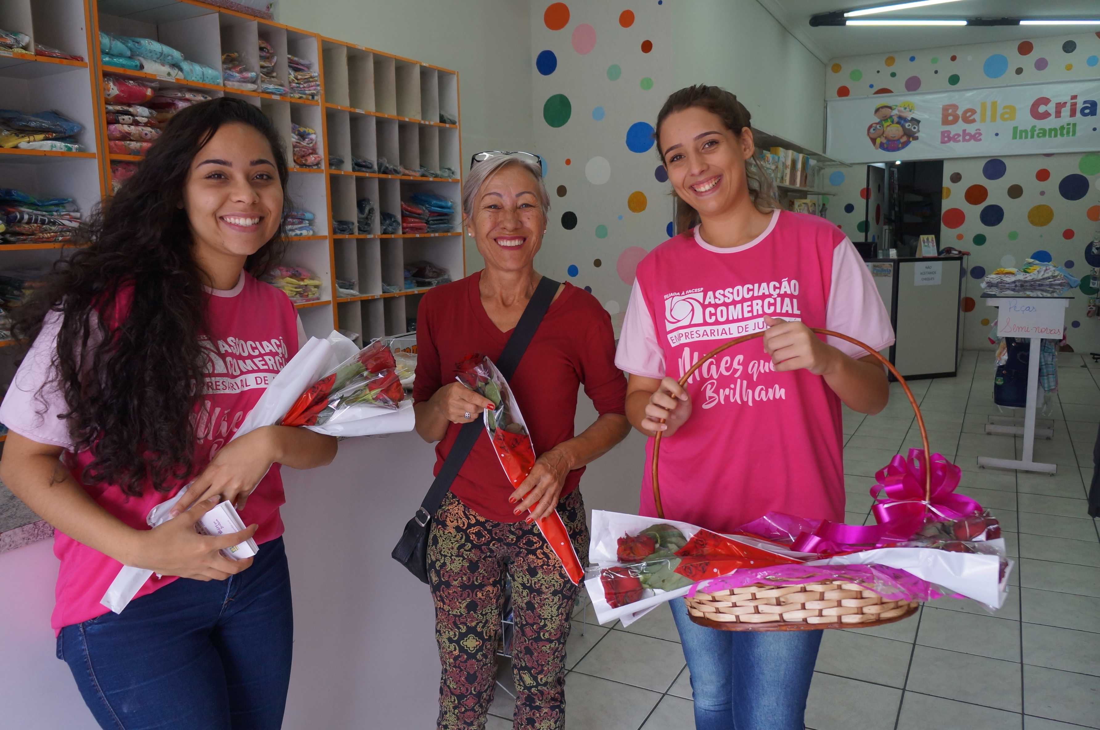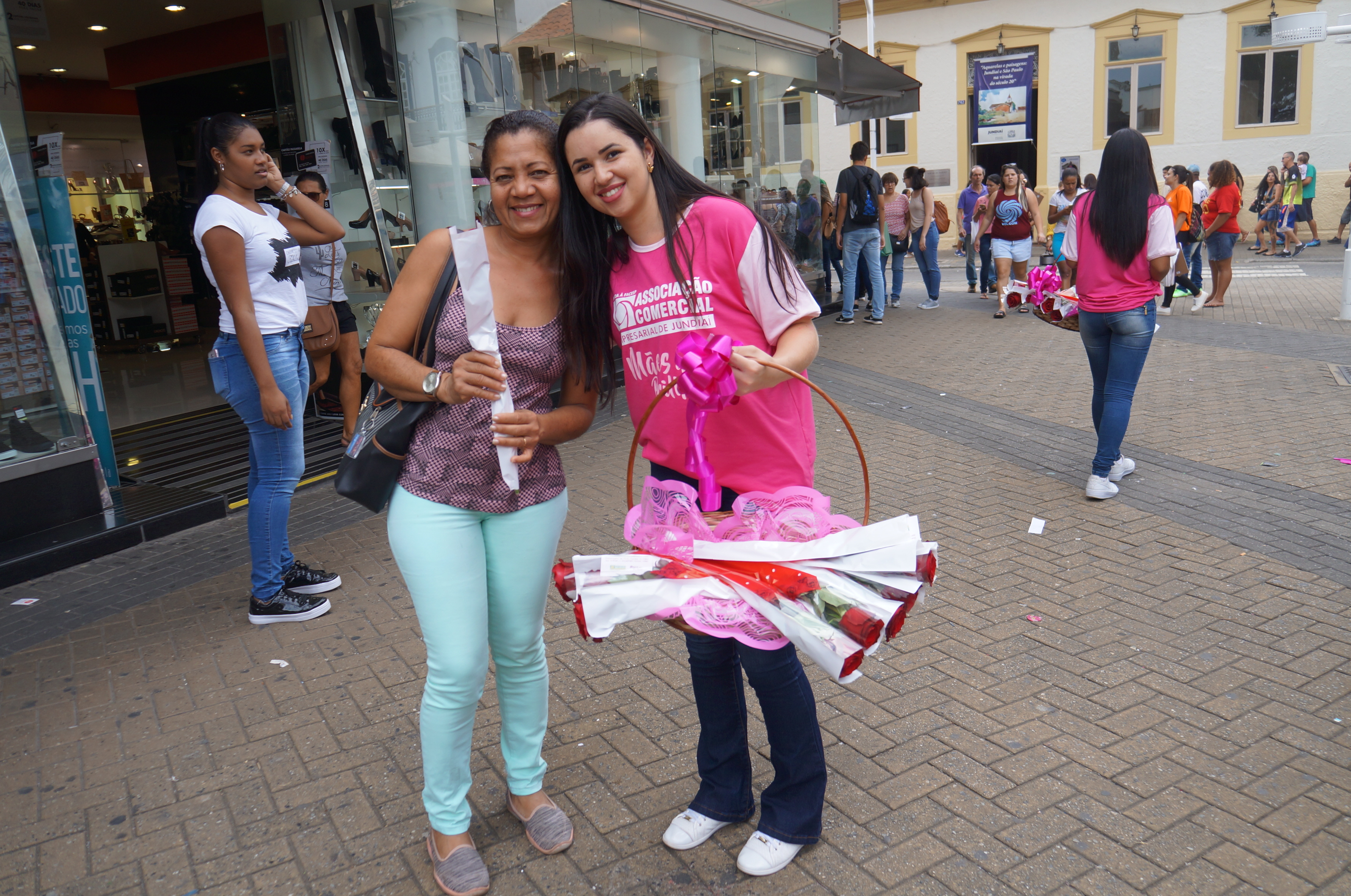 A Associação Comercial Empresarial de Jundiaí (ACE Jundiaí) celebrou o Dia das Mães distribuindo três mil rosas, neste sábado, para funcionárias do comércio e consumidoras. Várias equipes percorreram as principais ruas do Eloy Chaves, Ponte São João, Vila Arens, Vianelo, Vila Rami, Vila Hortolândia, Vila Rio Branco e Centro, que estendeu o horário das lojas até 18h.