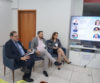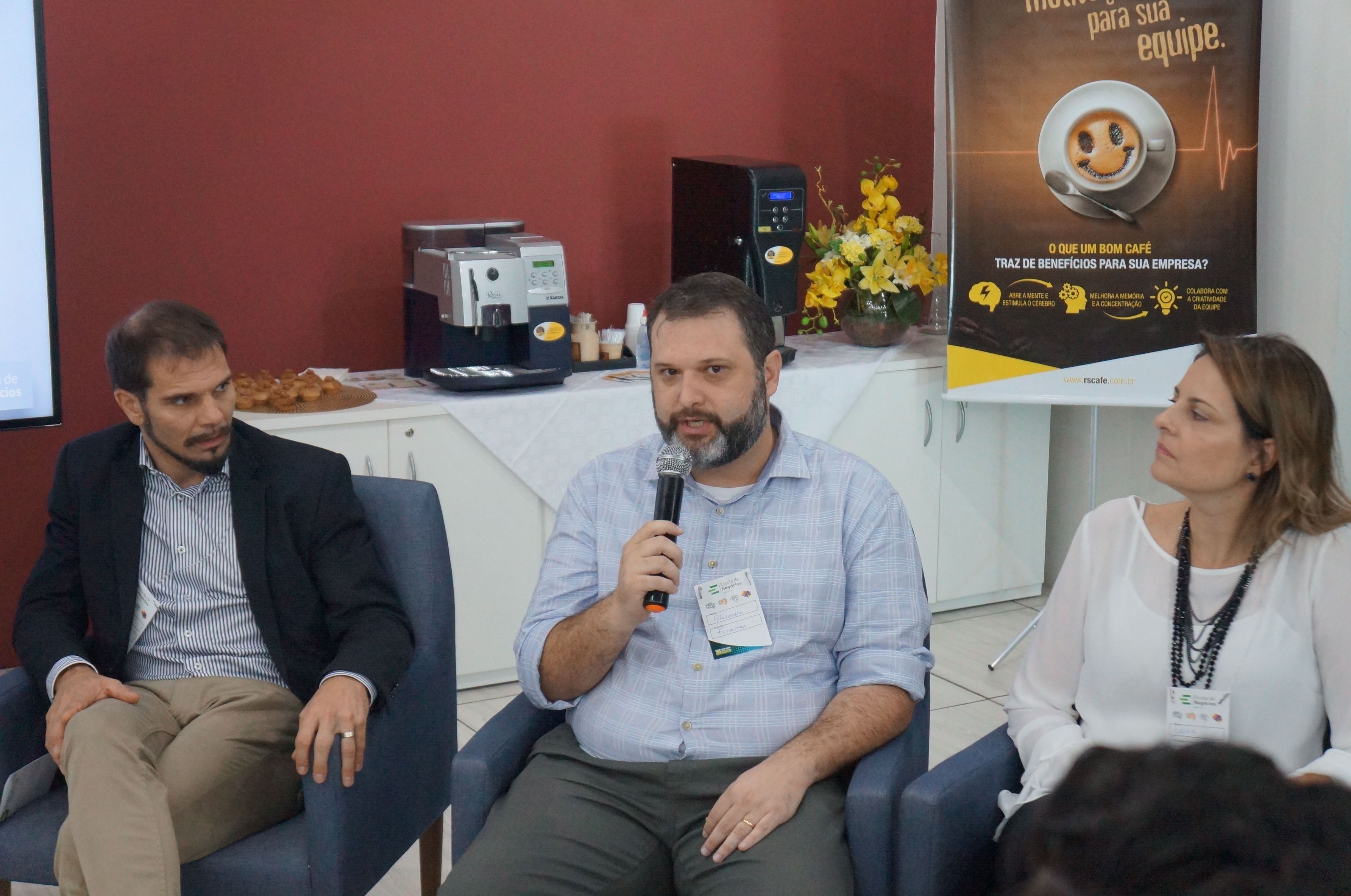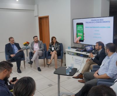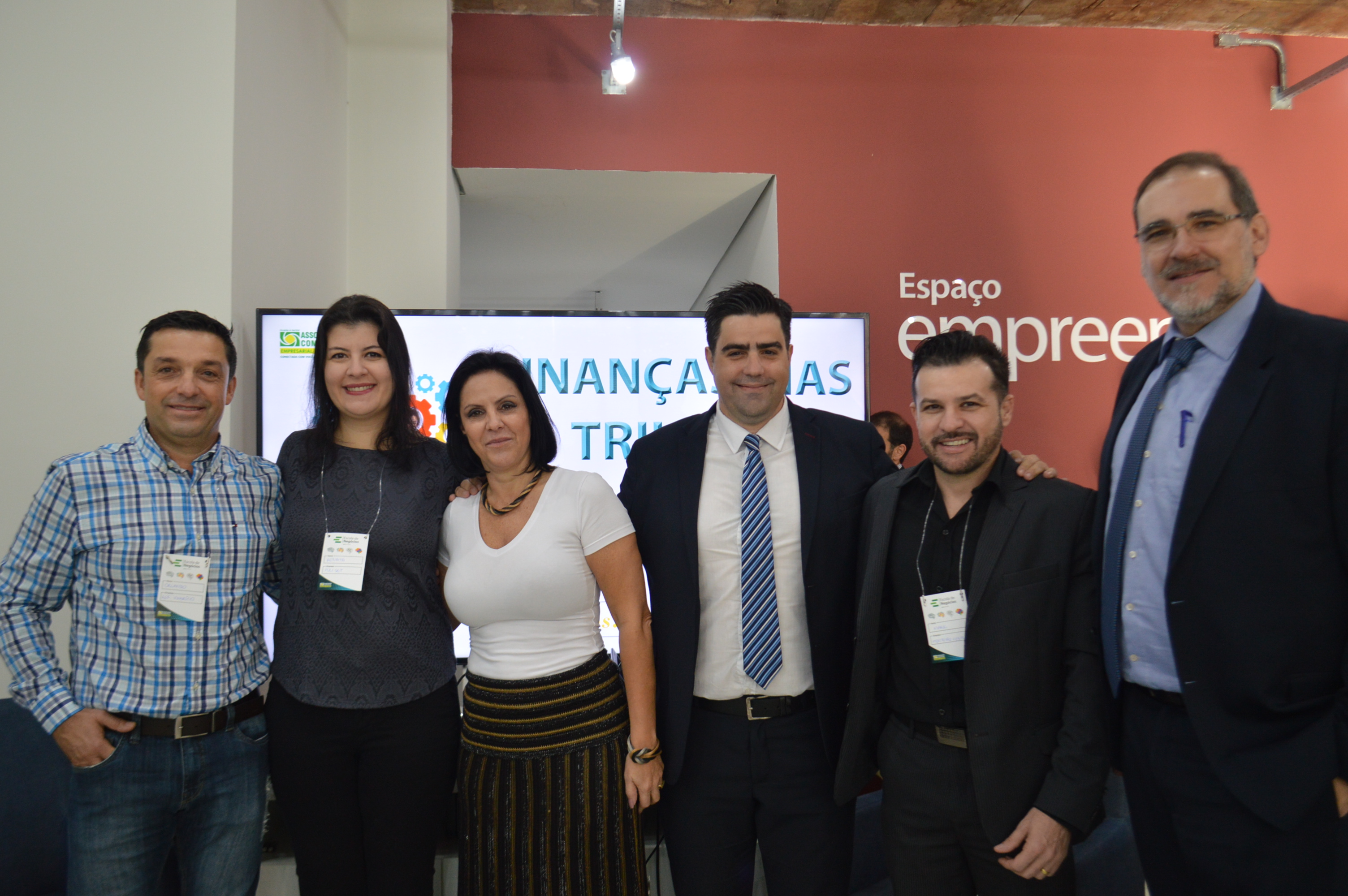 O educador e terapeuta financeiro Pedro Braggio fez a mediação e os profissionais Alexandre Salum (Gerente de Planejamento de Crédito na Finamax), Carla Maltoni (empresária e coach de Inteligência Financeira), Érika Mattos (gerente regional da Madeiranit), Laurent Garnier (diretor de operações logísticas na Scania América Latina) e Robson Rigoni (gestor na Nouryon Chemical) compartilharam experiências em suas áreas, respondendo a perguntas do mediador e do público.