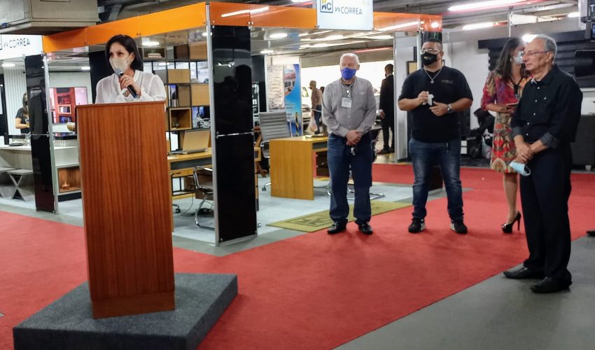 A vice-presidente, Leandra Maia Diniz, cumprimentou Adelson pela iniciativa e comemorou a retomada do setor de eventos como a Feiccad, um dos mais prejudicados durante a pandemia. “É com grande alegria que a Associação Comercial marca presença nesta feira, uma importante vitrine para quem trabalha com a área de construção”, disse durante a abertura. “Desejo muito sucesso a você, Adelson, e bons negócios a todos os participantes.”