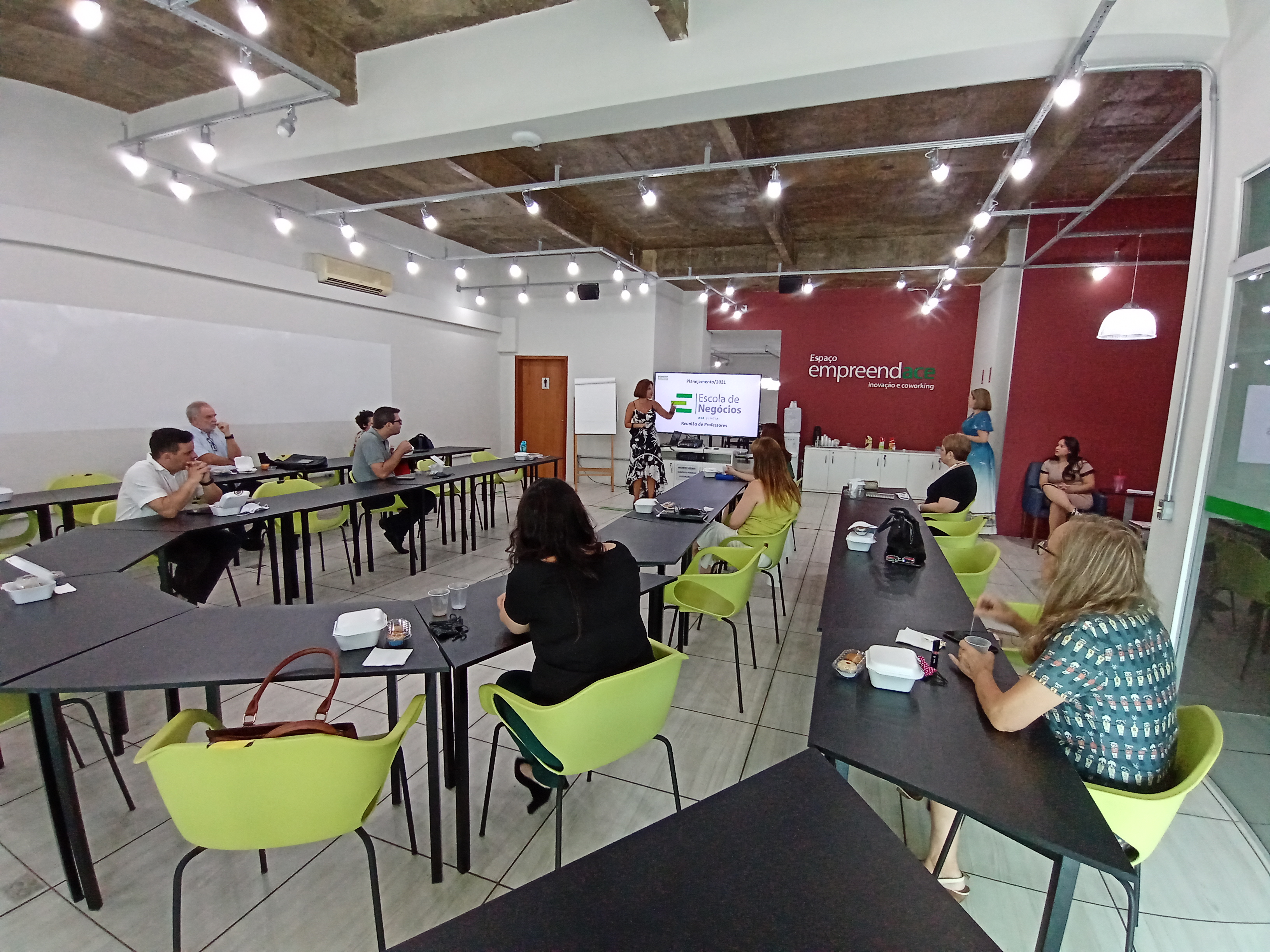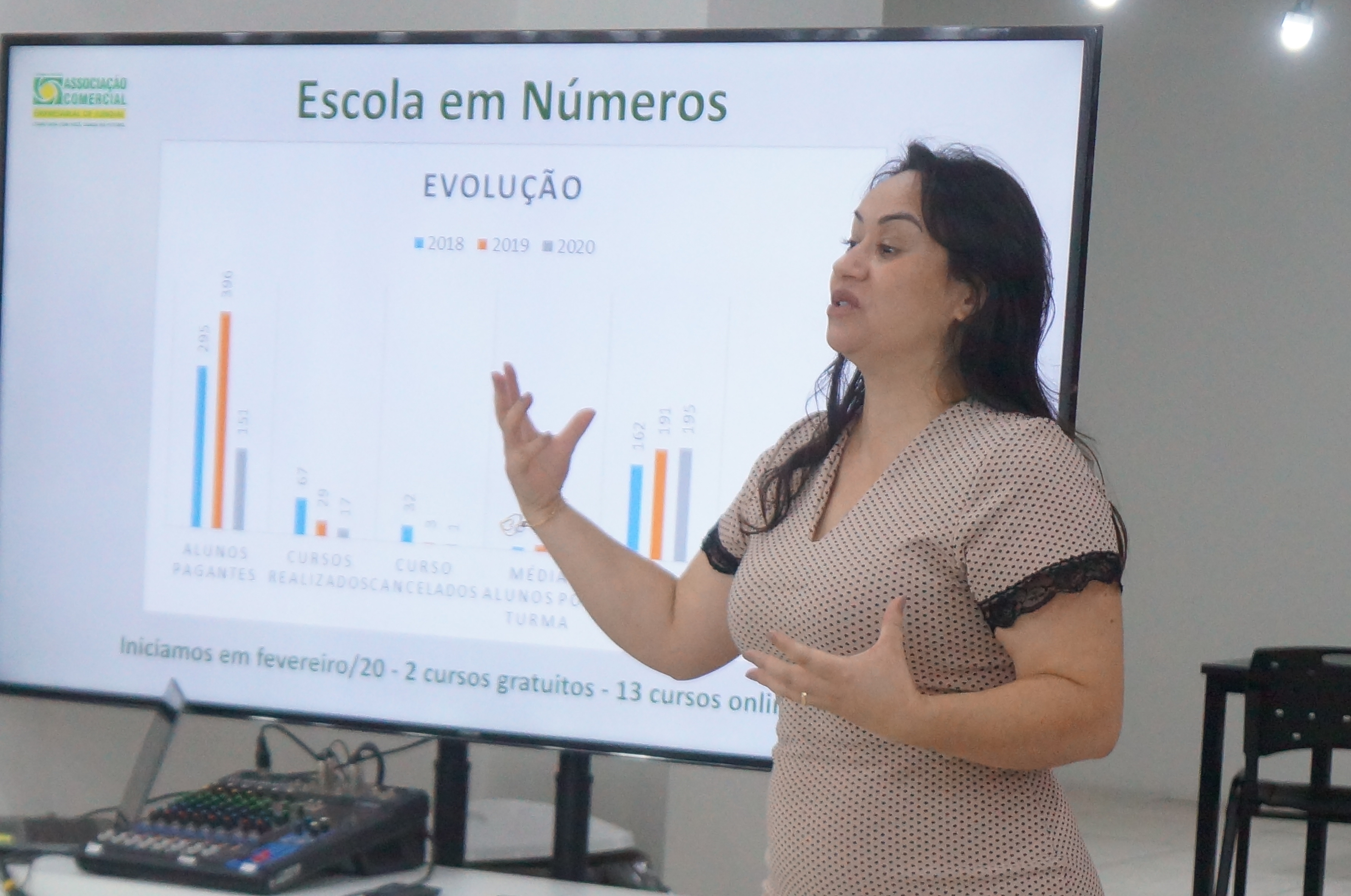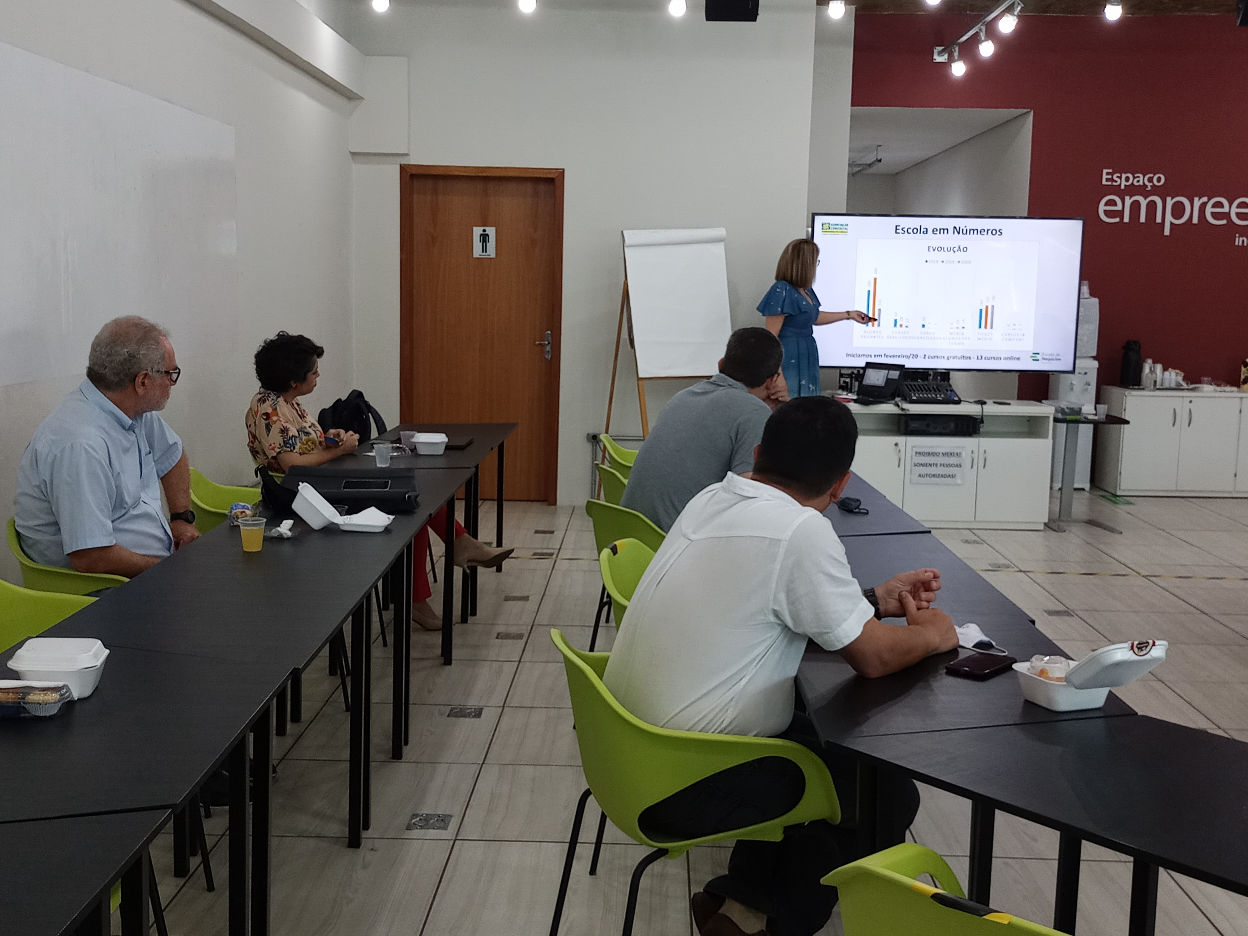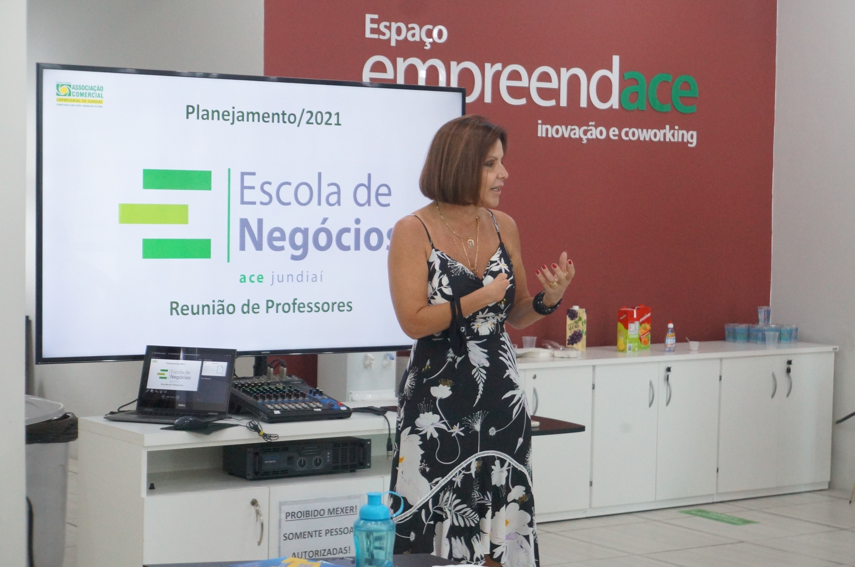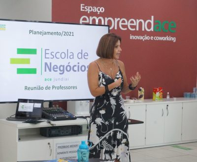 Durante a manhã a coordenadora, Daniela Moraes Marques, apresentou o calendário de atividades, as ações em desenvolvimento e a nova plataforma da Escola (https://escoladenegocios.acejundiai.com.br/), que traz informações sobre os próximos treinamentos da grade, divididos em Trilhas de Conhecimento, e oferece acesso a todo o histórico e material dos cursos contratados.