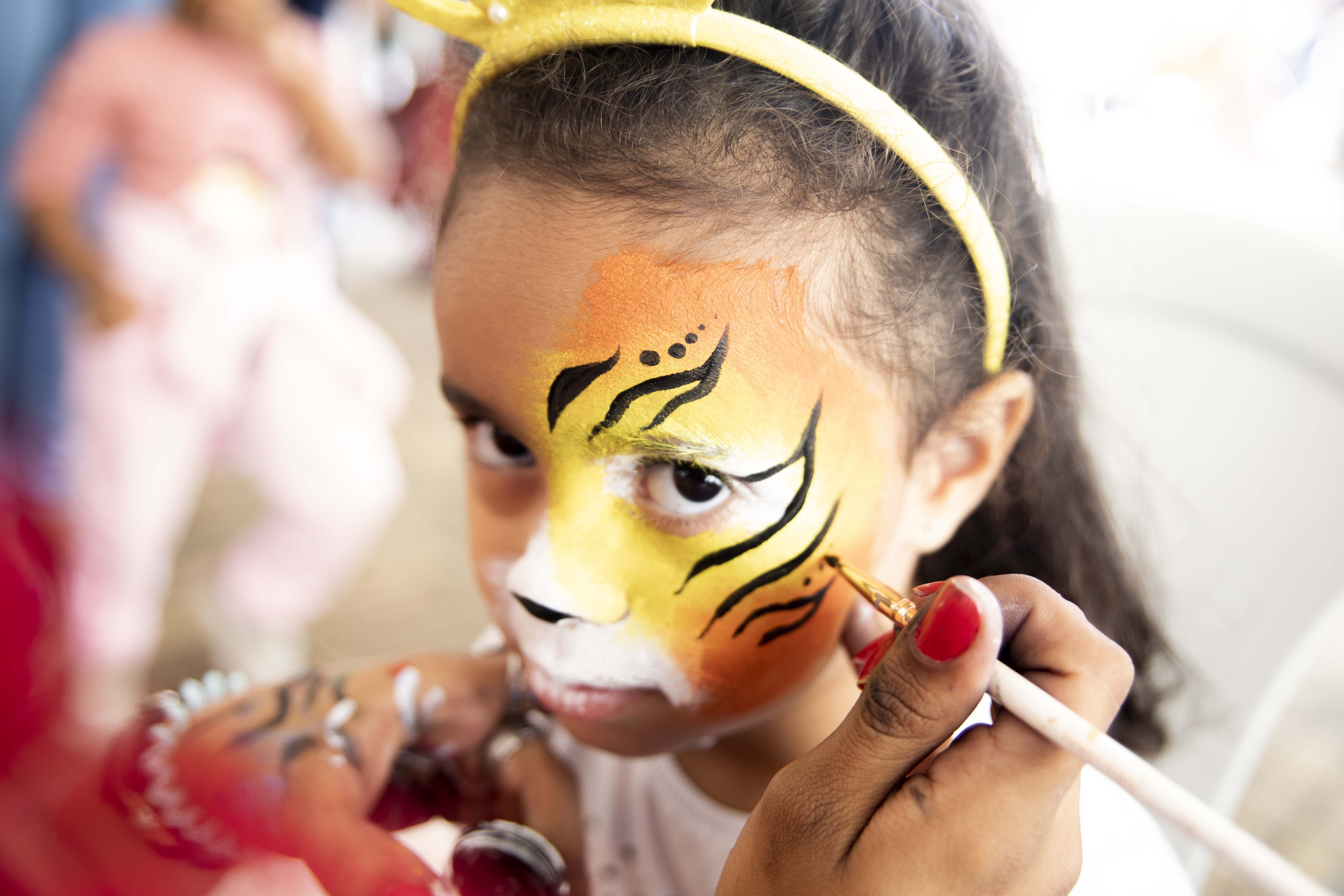 Uma das atrações mais concorridas foi a pintura facial, mas o público aproveitou também a distribuição de pipoca e algodão doce, piscina de bolinhas inflável, pula pula do Mickey, oficina de balões artísticos, totem fotográfico e interação com personagens infantis.