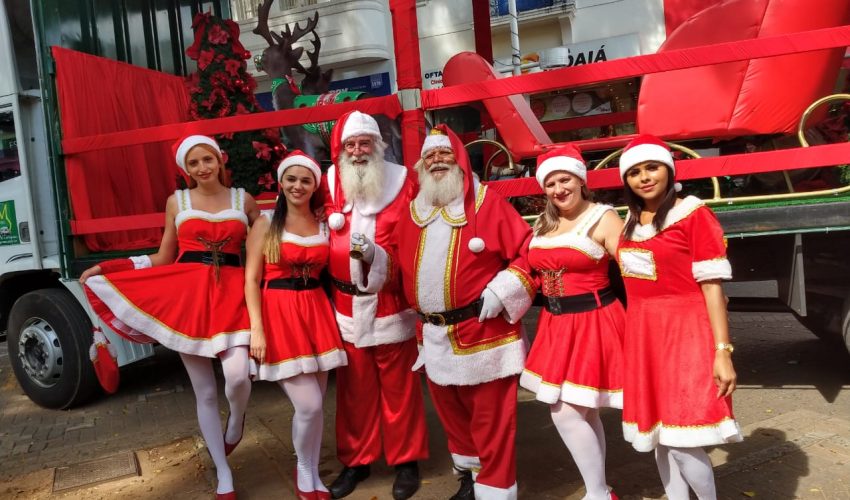 Um fica no Cenário Encantado montado pela Associação Comercial Empresarial de Jundiaí (ACE Jundiaí) na Praça Governador Pedro de Toledo, em frente à Catedral. O outro está percorrendo bairros da cidade no Caminhão Encantado. Juntos, Rolando Carlos Caron, 66, e Francisco Luiz de Menezes Silva, 60, ou simplesmente Papai Noel, estão emocionando crianças e adultos.