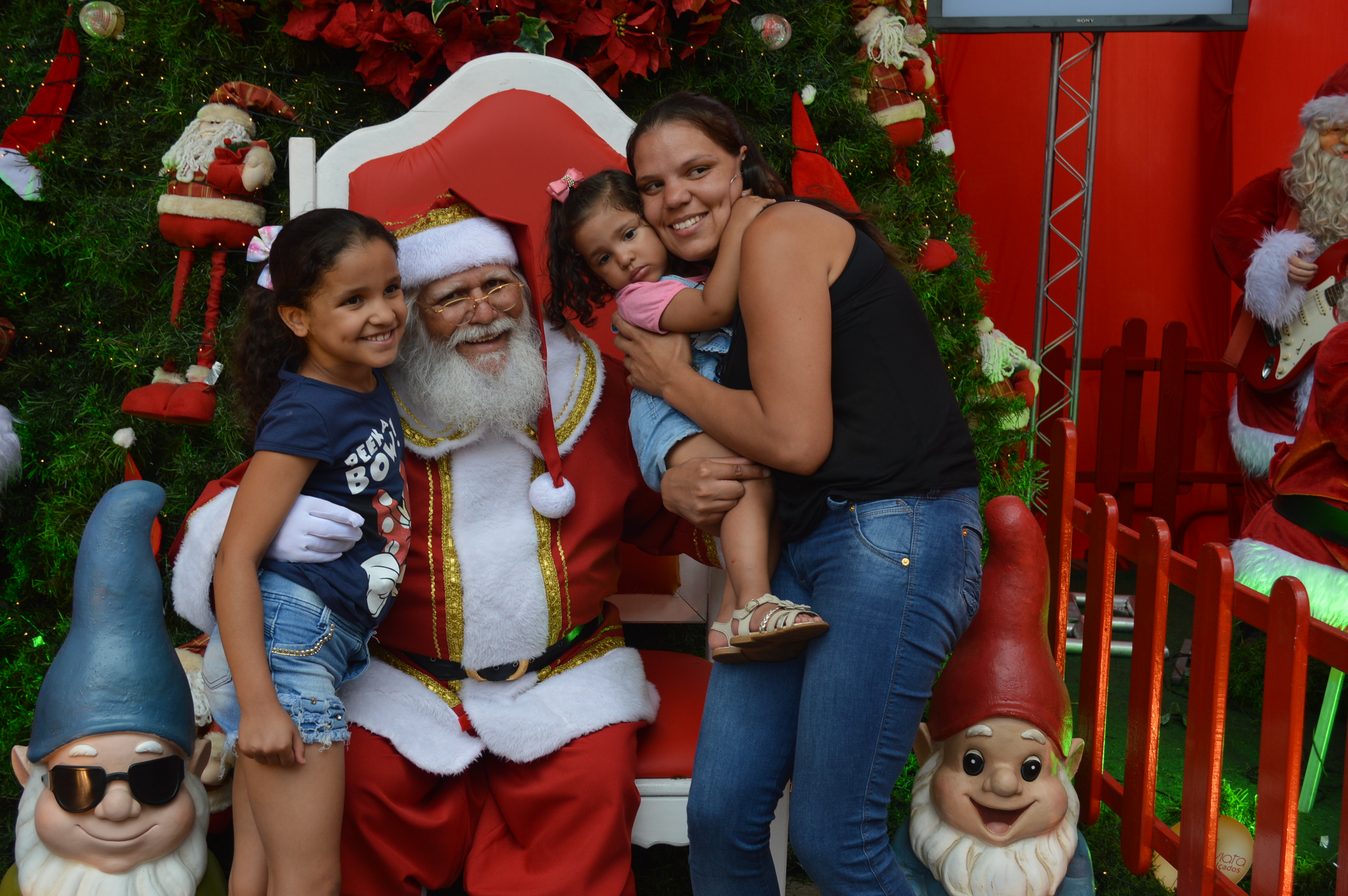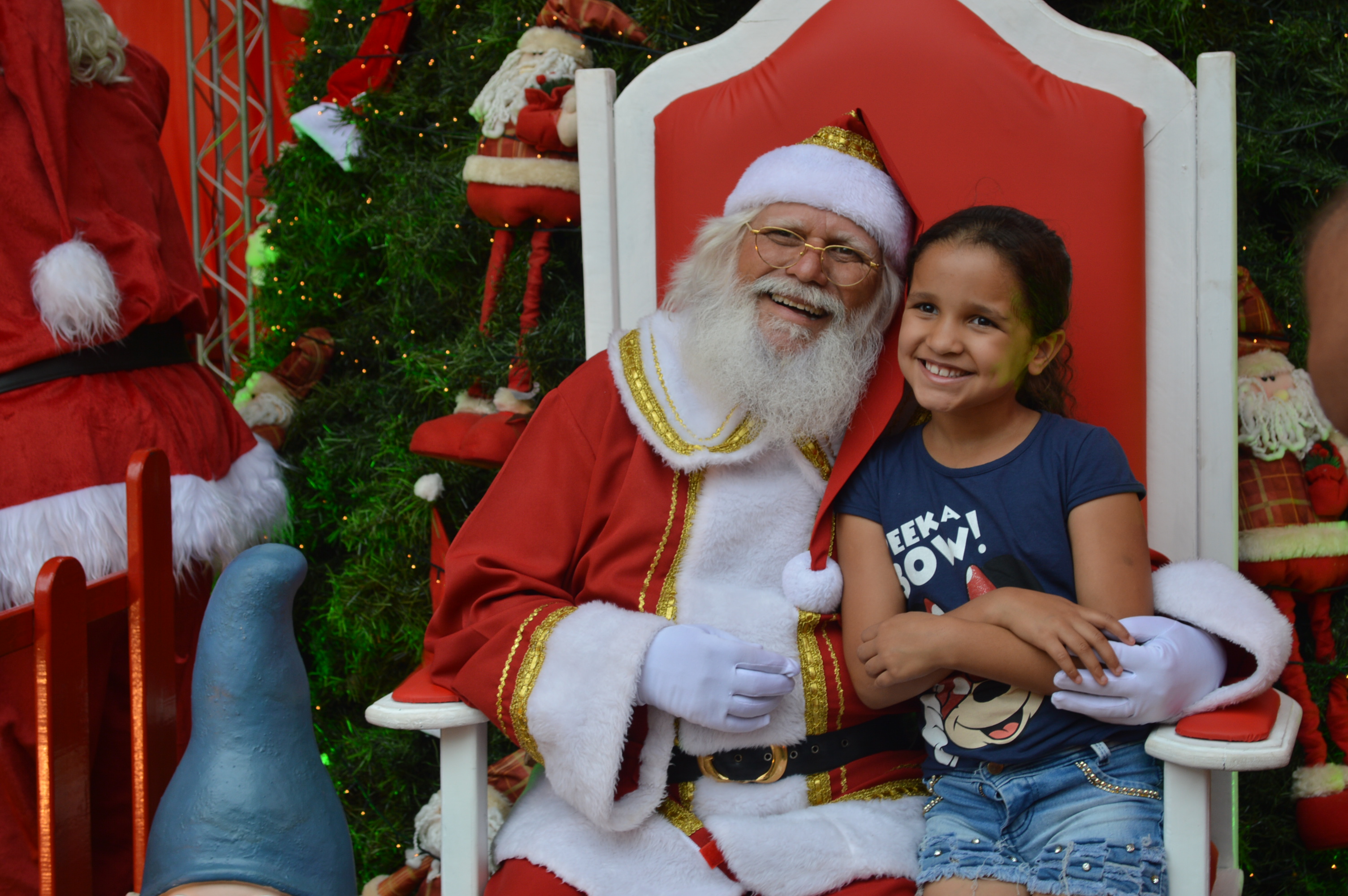 Várias crianças acompanhavam atentas o evento, à procura do Papai Noel. A gerente de vendas, Keila Santana, fez suspense e brincou com os pequenos, para que todos chamassem o Papai Noel. Escondido em um carro, ele saiu em direção aos pequenos, emocionando adultos como Maria de Fátima de Jesus Casemiro, 59 anos, que não conteve as lágrimas.