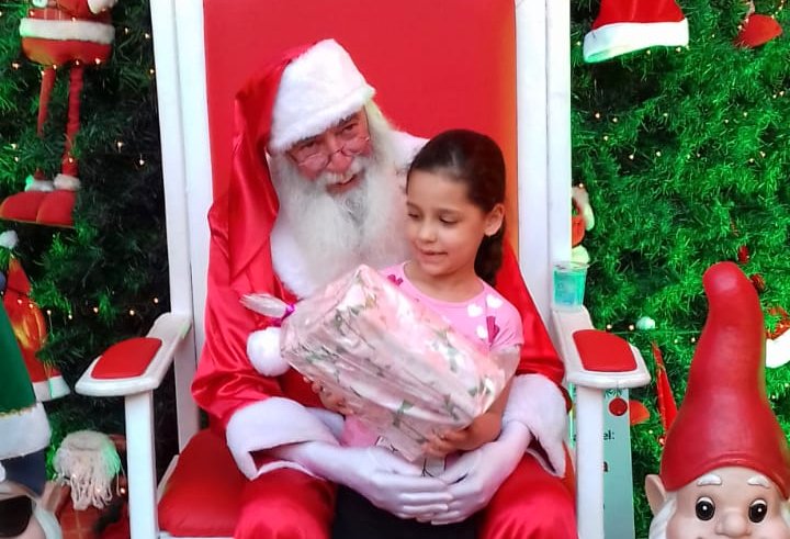 Regiane deixou o presente no Cenário Encantado com as noeletes, sem que Maria Eduarda percebesse. E a família foi para a fila aguardar a vez de tirar a foto. Quando o Papai Noel pegou o presente escondido e entregou à menina, ela não acreditou. “A cena dela recebendo este presente será inesquecível”, disse a mãe. “Quando ela abriu a embalagem e viu que eram quatro LOL, foi uma mistura de emoção, de alegria, de surpresa e principalmente de amor.”