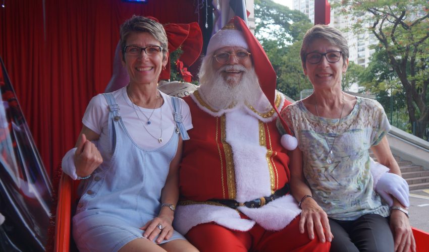 As irmãs Idamir e Rita de Cássia Formagin acompanharam o Caminhão da ACE da avenida São Paulo até a frente da paróquia para tirar foto com o Papai Noel e realizar um sonho antigo. “É a nossa primeira imagem assim. Foi emocionante!”, disseram as gêmeas de 53 anos e mães de filhos já adultos.