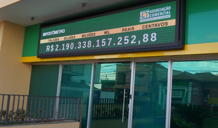O painel do Impostômetro da Associação Comercial Empresarial de Jundiaí (ACE Jundiaí), instalado da fachada, à rua Rangel Pestana, 533, chegará à marca de R$ 2,2 trilhões de tributos pagos pelos brasileiros desde o primeiro dia do ano.