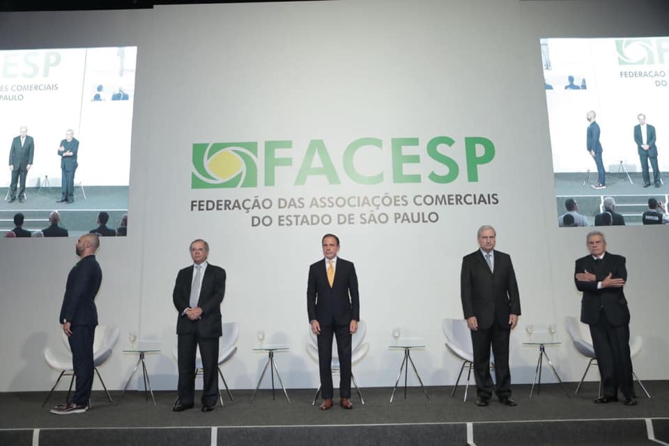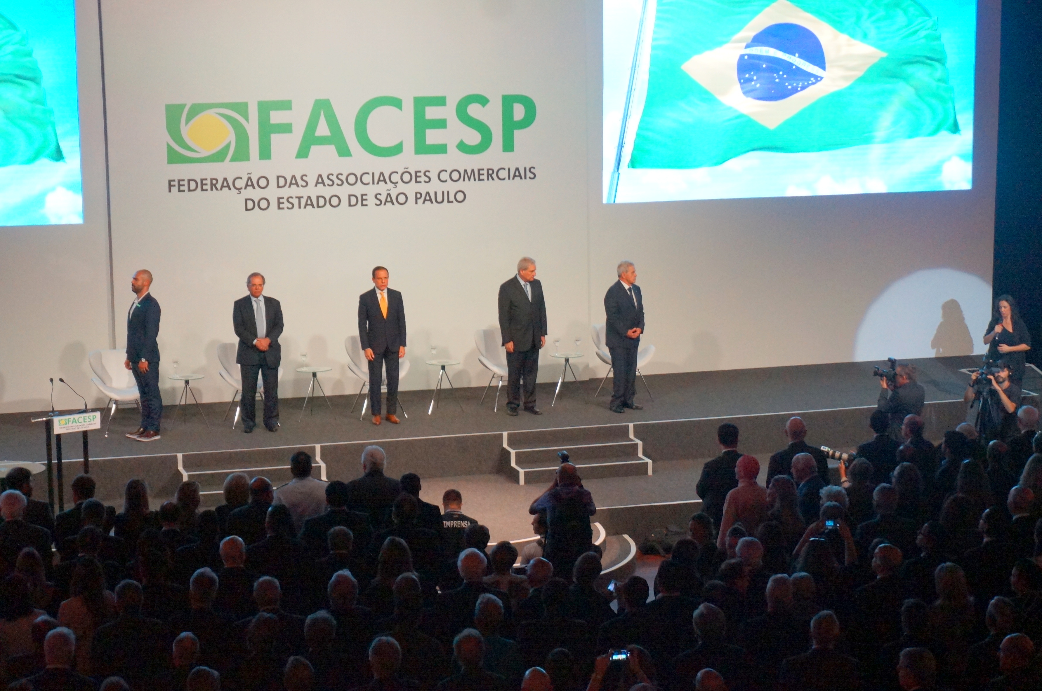 Posse de Alfredo Cotait Neto como presidente da Federação das Associações Comerciais do Estado de SP teve participação de Paulo Guedes, João Doria e Bruno Covas; também tomaram posse hoje a diretoria executiva da Facesp e os 20 vice-presidentes da Federação, representando as regiões administrativas paulistas, entre eles, o presidente da ACE Jundiaí, Elton Monteiro